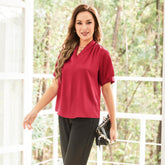 Damen Seidenschal Rote Seidenbluse Seiden Kurzarmhemd V-Ausschnitt Seidenhemd - Rotwein