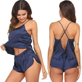Seidiges Cami-Pyjama-Set Reiner Sommer Seidiges Camisole für Frauen - Marineblau