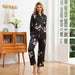 Embrace effortless elegance with this black floral silk pajama set, crafted from 100% 22 Momme Mulberry silk for a smooth, lustrous feel. The white blossom print stands out beautifully against the black base, creating a timeless, feminine look. Designed with a classic button-up top and relaxed-fit pants, this silk sleepwear set offers both comfort and sophistication. Perfect for luxury lounging, sleepwear, or as a thoughtful gift for her.