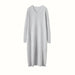 Mit seinem schmeichelnden V-Ausschnitt und den langen, taillierten Ärmeln bietet dieses Kleid eine zeitlose Silhouette, die perfekt zu jedem Anlass passt. Der weiche Strickstoff sorgt für Wärme und ein luxuriöses Tragegefühl, während die Midi-Länge für einen Hauch von Eleganz sorgt. Der gerade Schnitt sorgt für eine bequeme und dennoch elegante Passform und macht es ideal für legere Anlässe und formelle Anlässe.