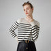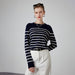Werten Sie Ihre Alltagsgarderobe mit diesem Kaschmirpullover auf, der für mühelose Eleganz und Komfort steht. Er besteht aus 35 % Kaschmir und bietet ein luxuriös weiches Tragegefühl und leichte Wärme. Das zeitlose horizontale Streifenmuster verleiht ihm einen schicken maritimen Touch, während der Rundhalsausschnitt und die langen Ärmel ihn vielseitig einsetzbar machen – ob im Lagenlook oder solo.